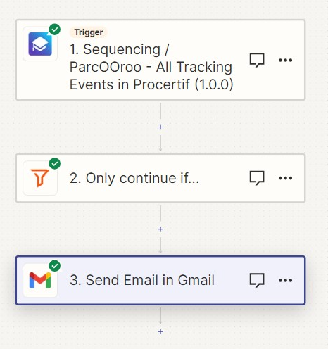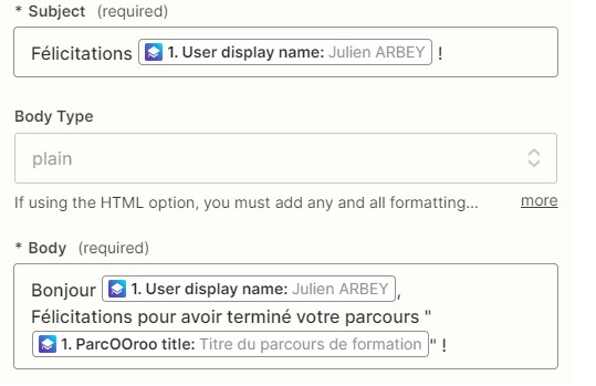 Dans notre exmple, vous allez désormais envoyer un email automatiquement via votre gmail dès que l’un de vos participants déverrouillera cette étape.