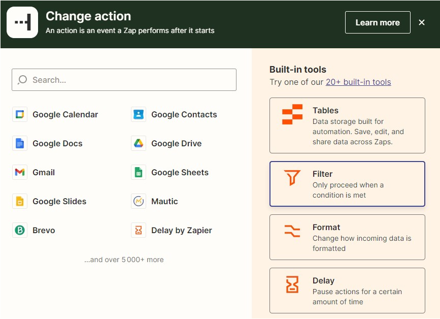 Vous pouvez imaginer n’importe quelle autre action parmi les 6 500 intégrations disponibles dans zapier.